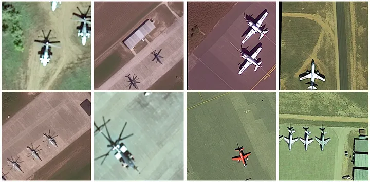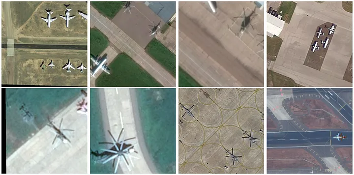For this case study, the open-source DOTA [3] dataset was picked. It contains classified bounding box labels for eighteen object classes. For the sake of easily digestible and quickly reproducible results, out of the eighteen classes, the focus of the study was on two: planes and helicopters.